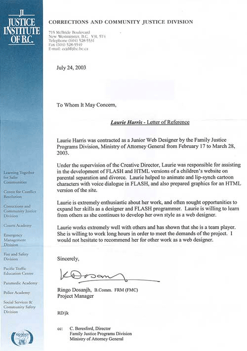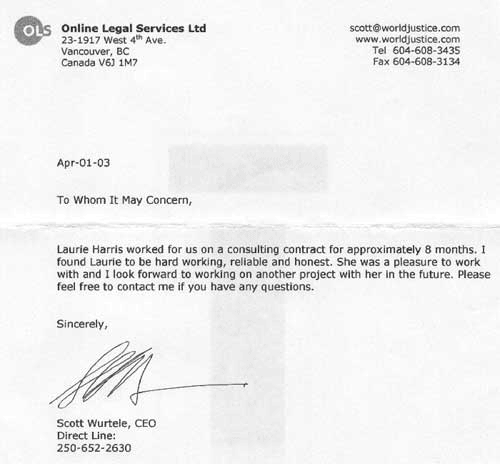 Reference form Online Legal Services for Laurie Harris